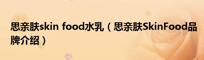大家好,小源来为大家解答以上问题。思亲肤skin food水乳,思亲肤SkinFood品牌介绍很多人还不知道,现在让我们一起来看看吧!
