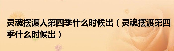 大家好,小晋来为大家解答以下问题,关于灵魂摆渡人第四季什么时候出,灵魂摆渡第四季什么时候出很多人还不知道,今天让我们一起来看看吧!