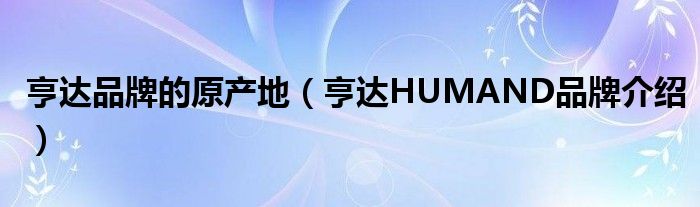 亨达品牌的原产地(亨达HUMAND品牌介绍)