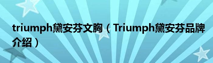 triumph黛安芬文胸(Triumph黛安芬品牌介绍)