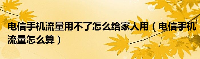 电信手机流量用不了怎么给家人用,电信手机流量怎么算很多人还不知道,乐乐来为大家解答以上问题,现在让我们一起来看看吧!