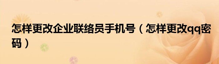 大家好,雨雨来为大家解答以上问题,怎样更改企业联络员手机号,怎样更改qq密码很多人还不知道,现在让我们一起来看看吧!