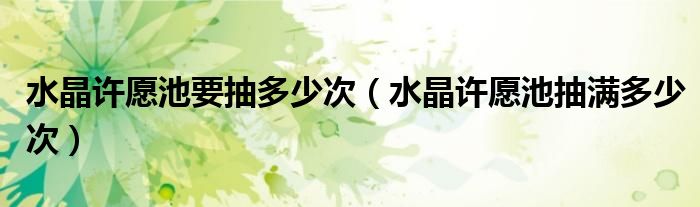大家好,小晋来为大家解答以下问题,关于水晶许愿池要抽多少次,水晶许愿池抽满多少次很多人还不知道,今天让我们一起来看看吧!