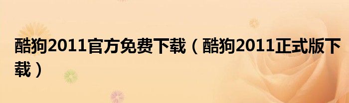 酷狗2011官方免费下载(酷狗2011正式版下载)