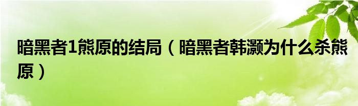 大家好,小晋来为大家解答以下问题,关于暗黑者1熊原的结局,暗黑者韩灏为什么杀熊原很多人还不知道,今天让我们一起来看看吧!