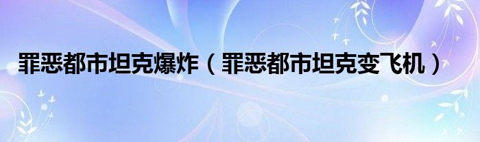 罪恶都市坦克爆炸,罪恶都市坦克变飞机这个很多人还不知道,小飞来为大家解答以上的问题。现在让我们一起来看看吧!