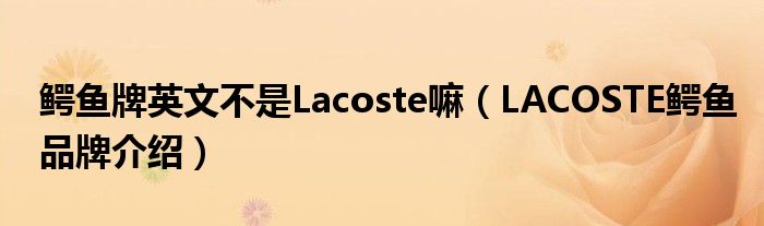 大家好,小源来为大家解答以上问题。鳄鱼牌英文不是Lacoste嘛,LACOSTE鳄鱼品牌介绍很多人还不知道,现在让我们一起来看看吧!