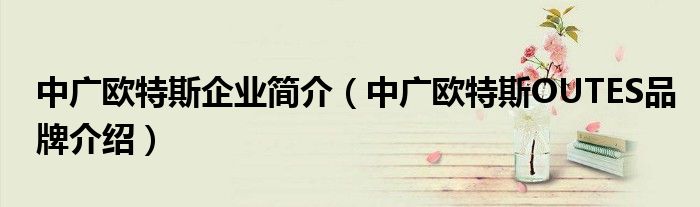 大家好,小源来为大家解答以上问题。中广欧特斯企业简介,中广欧特斯OUTES品牌介绍很多人还不知道,现在让我们一起来看看吧!