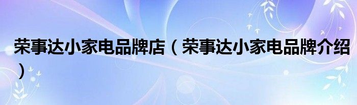 荣事达小家电品牌店(荣事达小家电品牌介绍)