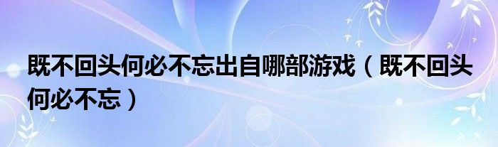 既不回头何必不忘出自哪部游戏,既不回头 何必不忘很多人还不知道,乐乐来为大家解答以上问题,现在让我们一起来看看吧!