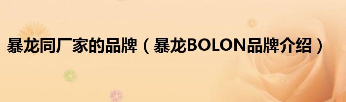 大家好,小源来为大家解答以上问题。暴龙同厂家的品牌,暴龙BOLON品牌介绍很多人还不知道,现在让我们一起来看看吧!