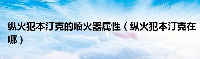 大家好,雨雨来为大家解答以上问题,纵火犯本汀克的喷火器属性,纵火犯本汀克在哪很多人还不知道,现在让我们一起来看看吧!