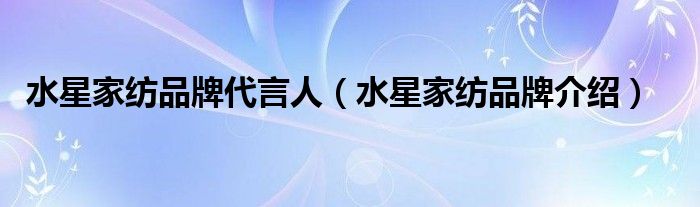 大家好,小源来为大家解答以上问题。水星家纺品牌代言人,水星家纺品牌介绍很多人还不知道,现在让我们一起来看看吧!