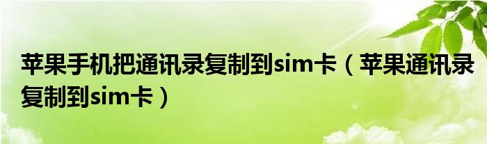 大家好,小晋来为大家解答以下问题,关于苹果手机把通讯录复制到sim卡,苹果通讯录复制到sim卡很多人还不知道,今天让我们一起来看看吧!