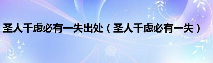 圣人千虑必有一失出处,圣人千虑必有一失这个很多人还不知道,小飞来为大家解答以上的问题。现在让我们一起来看看吧!