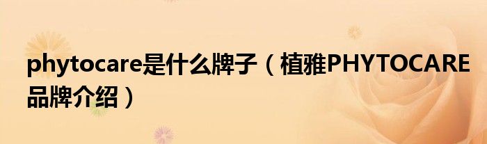 大家好,小源来为大家解答以上问题。phytocare是什么牌子,植雅PHYTOCARE品牌介绍很多人还不知道,现在让我们一起来看看吧!