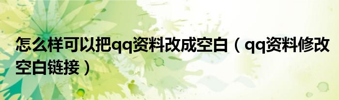 大家好,小晋来为大家解答以下问题,关于怎么样可以把qq资料改成空白,qq资料修改空白链接很多人还不知道,今天让我们一起来看看吧!