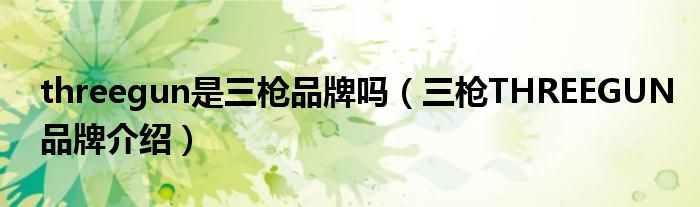 大家好,小源来为大家解答以上问题。threegun是三枪品牌吗,三枪THREEGUN品牌介绍很多人还不知道,现在让我们一起来看看吧!