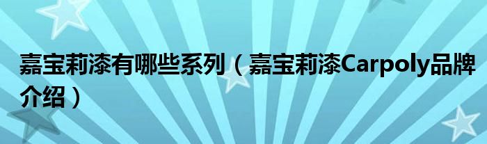 大家好,小源来为大家解答以上问题。嘉宝莉漆有哪些系列,嘉宝莉漆Carpoly品牌介绍很多人还不知道,现在让我们一起来看看吧!