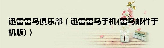 大家好,小常来为大家解答以上问题。迅雷雷鸟俱乐部,迅雷雷鸟手机(雷鸟邮件手机版)很多人还不知道,现在让我们一起来看看吧!