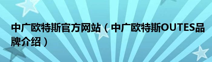 大家好,小源来为大家解答以上问题。中广欧特斯官方网站,中广欧特斯OUTES品牌介绍很多人还不知道,现在让我们一起来看看吧!