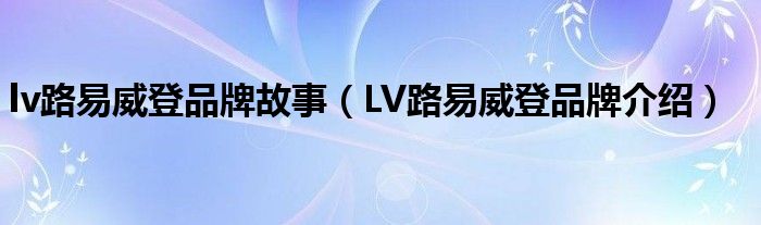 大家好,小源来为大家解答以上问题。lv路易威登品牌故事,LV路易威登品牌介绍很多人还不知道,现在让我们一起来看看吧!