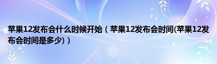 大家好,小常来为大家解答以上问题。苹果12发布会什么时候开始,苹果12发布会时间(苹果12发布会时间是多少)很多人还不知道,现在让我们一起来看看吧!