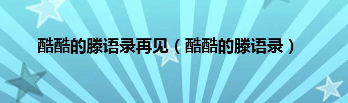 大家好,小晋来为大家解答以下问题,关于酷酷的滕语录再见,酷酷的滕语录很多人还不知道,今天让我们一起来看看吧!