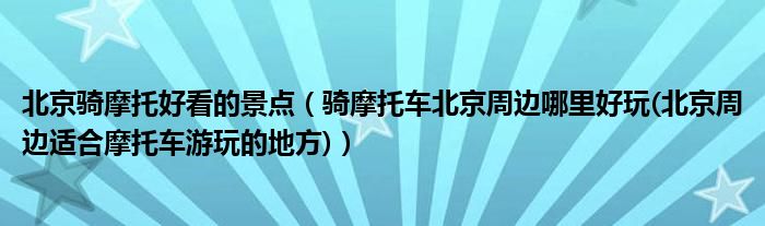 大家好,小常来为大家解答以上问题。北京骑摩托好看的景点,骑摩托车北京周边哪里好玩(北京周边适合摩托车游玩的地方)很多人还不知道,现在让我们一起来看看吧!