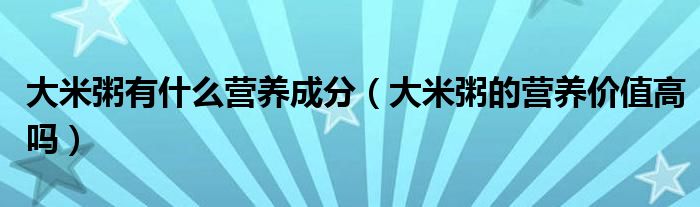 大家好,linda来为大家解答以上的问题。大米粥有什么营养成分,大米粥的营养价值高吗很多人还不知道,现在让我们一起来看看吧!