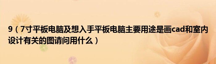 大家好,小常来为大家解答以上问题。9,7寸平板电脑及想入手平板电脑主要用途是画cad和室内设计有关的图请问用什么很多人还不知道,现在让我们一起来看看吧!