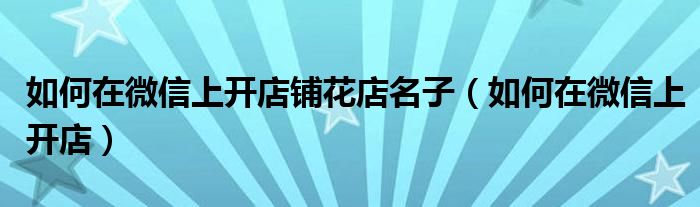 大家好,小晋来为大家解答以下问题,关于如何在微信上开店铺花店名子,如何在微信上开店很多人还不知道,今天让我们一起来看看吧!