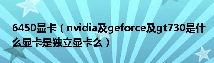 大家好,小常来为大家解答以上问题。6450显卡,nvidia及geforce及gt730是什么显卡是独立显卡么很多人还不知道,现在让我们一起来看看吧!