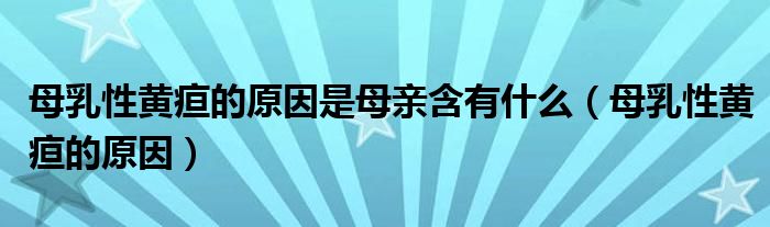 大家好,linda来为大家解答以上的问题。母乳性黄疸的原因是母亲含有什么,母乳性黄疸的原因很多人还不知道,现在让我们一起来看看吧!