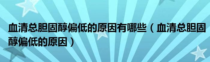 1、血清总胆固醇低多属于生理性改变,在甲亢、慢性感染、营养不良、肝炎等疾病中也可见,也可能是药物作用所致。