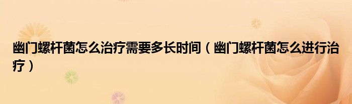 幽门螺杆菌怎么治疗需要多长时间(幽门螺杆菌怎么进行治疗)