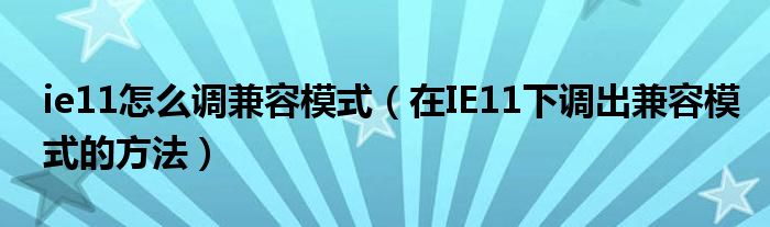 大家好,今天小悦来为大家解答以上问题。ie11怎么调兼容模式,在IE11下调出兼容模式的方法很多人还不知道,现在让我们一起来看看吧!