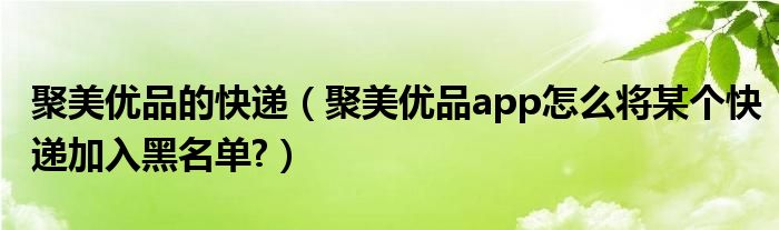 聚美优品的快递(聚美优品app怎么将某个快递加入黑名单?)