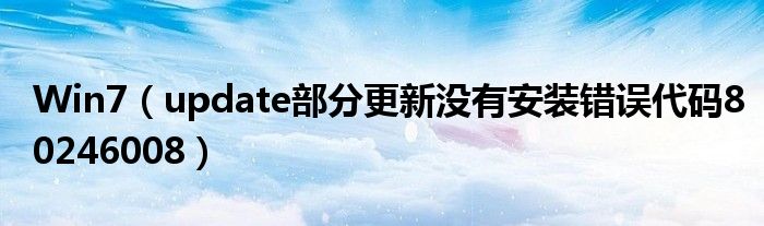 大家好,今天小悦来为大家解答以上问题。Win7,update部分更新没有安装错误代码80246008很多人还不知道,现在让我们一起来看看吧!