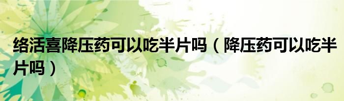 大家好,linda来为大家解答以上的问题。络活喜降压药可以吃半片吗,降压药可以吃半片吗很多人还不知道,现在让我们一起来看看吧!