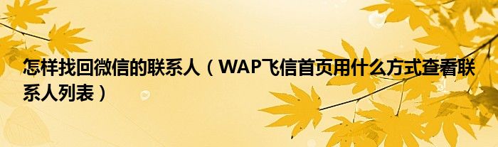 怎样找回微信的联系人(WAP飞信首页用什么方式查看联系人列表)