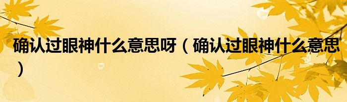 大家好,小晋来为大家解答以下问题,关于确认过眼神什么意思呀,确认过眼神什么意思很多人还不知道,今天让我们一起来看看吧!