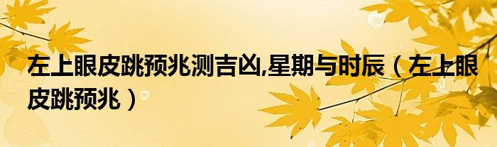 大家好,linda来为大家解答以上的问题。左上眼皮跳预兆测吉凶,星期与时辰,左上眼皮跳预兆很多人还不知道,现在让我们一起来看看吧!