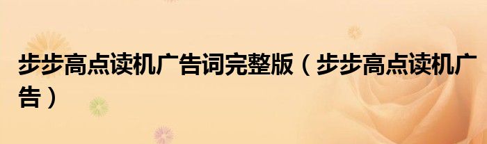 大家好,雨雨来为大家解答以上问题,步步高点读机广告词完整版,步步高点读机广告很多人还不知道,现在让我们一起来看看吧!