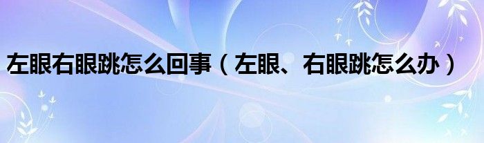 大家好,linda来为大家解答以上的问题。左眼右眼跳怎么回事,左眼、右眼跳怎么办很多人还不知道,现在让我们一起来看看吧!