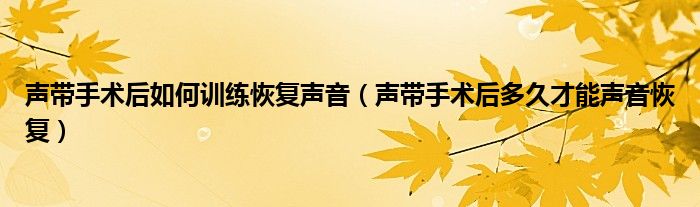 大家好,linda来为大家解答以上的问题。声带手术后如何训练恢复声音,声带手术后多久才能声音恢复很多人还不知道,现在让我们一起来看看吧!