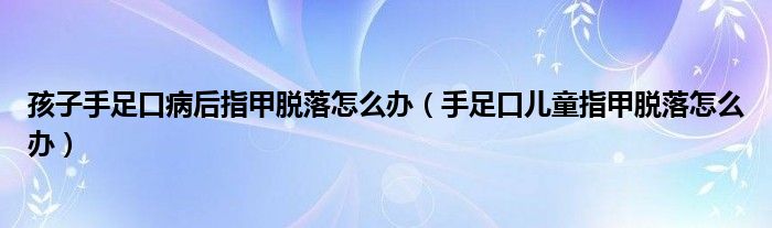 大家好,linda来为大家解答以上的问题。孩子手足口病后指甲脱落怎么办,手足口儿童指甲脱落怎么办很多人还不知道,现在让我们一起来看看吧!