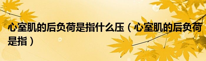 大家好,linda来为大家解答以上的问题。心室肌的后负荷是指什么压,心室肌的后负荷是指很多人还不知道,现在让我们一起来看看吧!