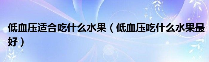 1、低血压可在生理和病理条件下发生。生理性低血压常与贫血有关。吃水果时,选择含铁量丰富的水果,如樱桃,含铁量丰富。铁是合成人体血红蛋白和肌红蛋白的原料,可改善贫血。