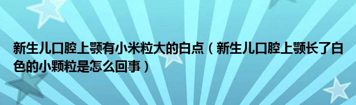 大家好,linda来为大家解答以上的问题。新生儿口腔上颚有小米粒大的白点,新生儿口腔上颚长了白色的小颗粒是怎么回事很多人还不知道,现在让我们一起来看看吧!